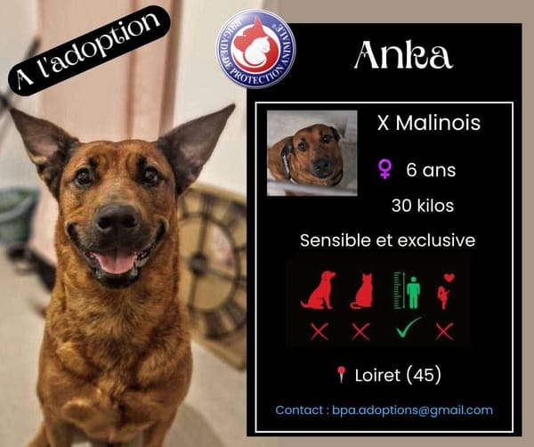 Anka est une chienne sortie de maltraitances, elle garde des sequelles d'années de violences.