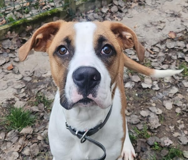 Trouvé errant sur la voie publique, nous ne connaissons pas son passé. C'est un jeune chien très sensible et un peu craintif. Il recherche un environnement calme en campagne ou petite ville avec des humains doux et patients qui lui feront decouvrir le minde petit à petit. Une fois en confiance c'est un chien adorable et dynamique.