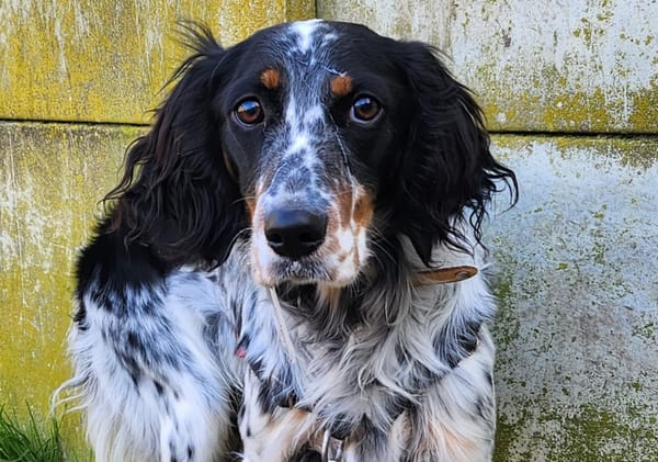 Geppetto est un petit croisé setter teouvé errant. Nous ne connaissons pas son passé mais sûrement un chien qui n'a rien connu.