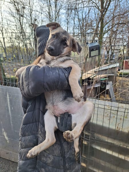 Effarouché suite à un passage difficile à l'équarrissage, Grigri a bien évolué et est désormais un amour de chiot qui attend sa famille.