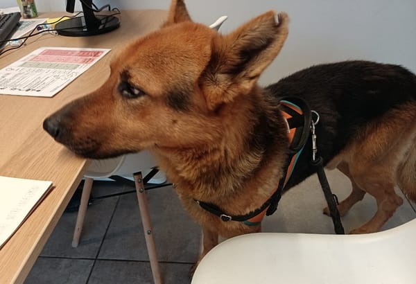 Lascaux est toutou est très affectueux. Très maigre, il a encore besoin de reprendre du poil de la bête, mais ce beau berger allemand attend déjà sa famille avec impatience.