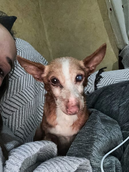 Elfo n'est plus un chiot depuis longtemps...C'est un chien âgé que la vie a laissé pour compte. Il a été trouvé aux abords de la ville seul et complètement désorienté.