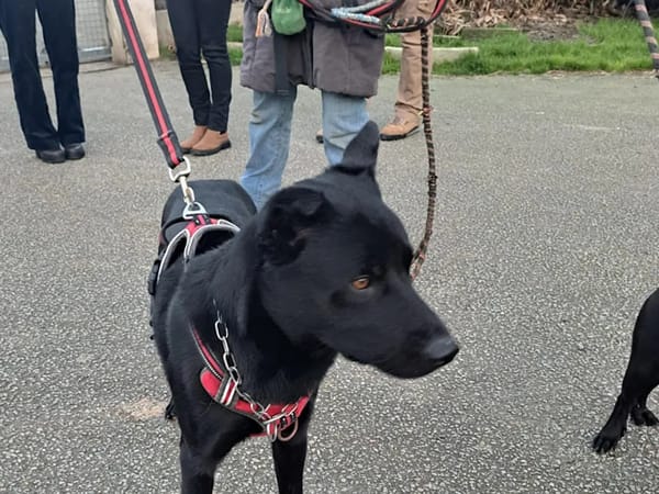 Il ne tire pas sur sa laisse et a une éducation de base qu’il faudra continuer à développer une fois qu’il sera dans un environnement stable.