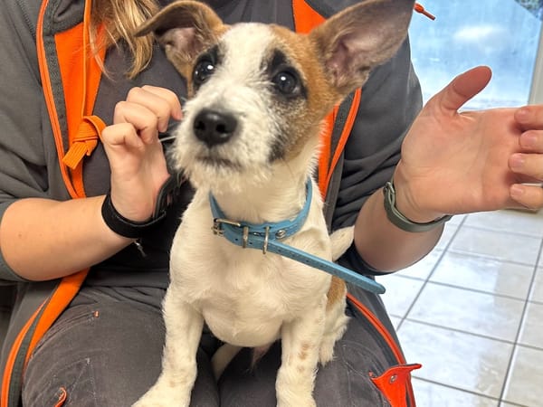 Roger est un petit chiot de 4 mois, plein de vie qui a encore tout à apprendre ( propreté, marche en laisse etc…)