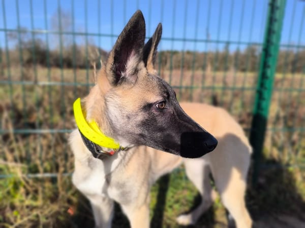 Belle reste encore très craintive mais gentille cependant toute son éducation est à faire et elle aura besoin de temps et de patience pour accorder sa confiance.
