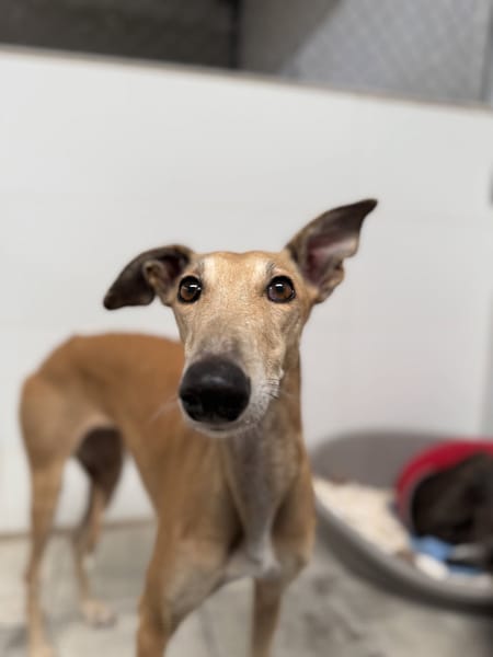 SON CARACTERE : Belen est une galga très gentille, douce et sociable. Elle n’a aucune crainte et se montre très équilibrée. Elle est de nature joyeuse et a toujours un très bon comportement. Elle adore recevoir de la visite dans son box, elle remue la queue et court pour recevoir des caresses. Mais elle sait aussi se poser rapidement et attendre sagement qu’on s’occupe d’elle. Elle s’entend très bien avec tous les profils de chiens, qu’ils soient actifs, très joueurs ou calmes.