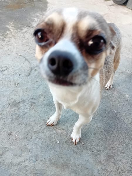 TCHOUPI , Mâle CHIHUAHUA fauve charbonné et blanc : chien mâle adulte à adopter