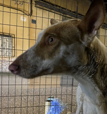 Saona déambulait en courant la nuit dans les rues et se cachant des humains.. elle était toujours avec sa copine de galère la galga Caliope également sur notre site. Elles partageaient les mêmes peurs, la même méfiance.