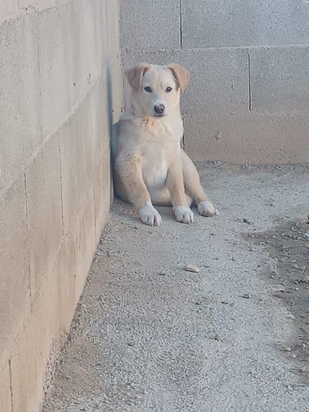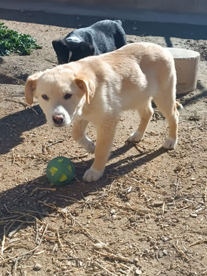 Maintenant il commence à s'ouvrir davantage et vient renifler les bénévoles. Quand ils sont dans l'enclos et que ses frères et soeurs viennent chercher des câlins, il s'approche puis se réfugie dans un coin.