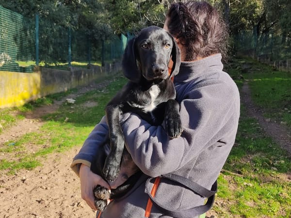 Noham a été trouvé en divagation avec sa sœur Néala. C'est un chiot très proche de l'humain ; il est joueur, câlin et aime découvrir le monde ! Il faudra tout lui apprendre car la majeure partie de son éducation est à faire.