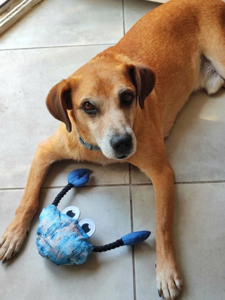 Seven est arrivé en France le 21 mai 2022. C'est un adorable chien, vif, dynamique malgré son âge, et terriblement affectueux. C'est le compagnon idéal pour les amateurs de câlins!