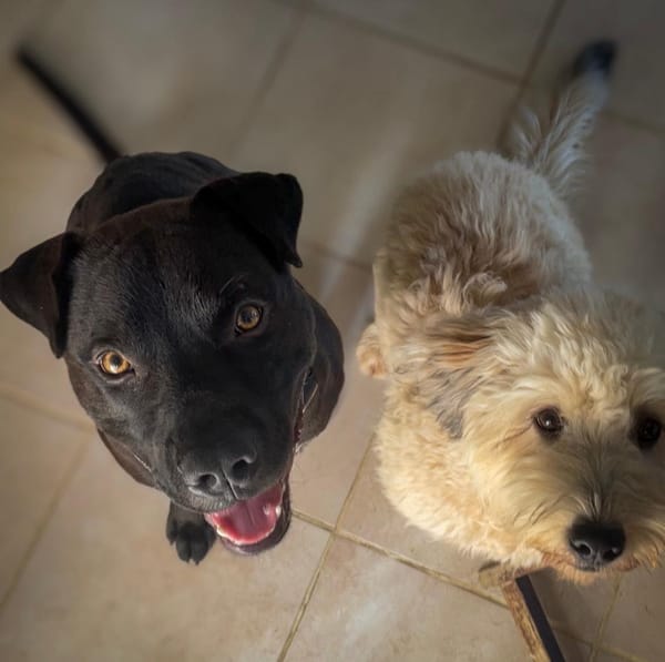 Je continue d'apprendre tous les jours : en ce moment, je travaille sur le « pas bouger » quand on me lance une croquette au loin (tatie dit que je m'en sors très bien, mais chut 🤫, sinon elle arrêtera l'exercice et moins de friandises pour moi !). La prochaine étape sera de commencer à marcher en laisse tranquillement, ce que nous allons commencer dès la semaine prochaine 🐕.