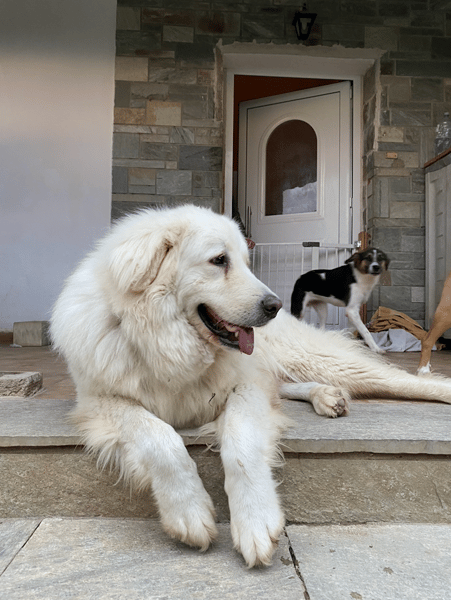 Malgré sa présence imposante, M. White est un ours en peluche doux et affectueux qui adore les câlins et vous donnera de petits coups de patte pour vous faire caresser. C'est un médiateur naturel entre chiens, intervenant calmement pour apaiser les situations lorsque le jeu devient trop brutal.