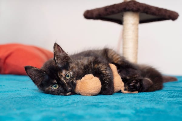 J'adore les caresses et je me couche sur le côté pour les papouilles sous le ventre. J'aime aussi me faire prendre dans les bras pour les câlins et je joue beaucoup avec mes balles 🎾 .