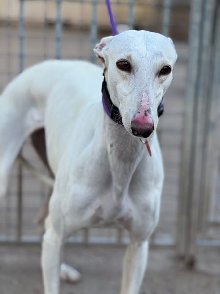 COPA est une Galga très gentille, aussi bien avec les autres chiens qu’avec les humains. Sociable et équilibrée, elle apprécierait de vivre dans une maison avec un jardin, idéalement entourée d’autres chiens, afin de s’épanouir pleinement et de partager son quotidien en bonne compagnie.