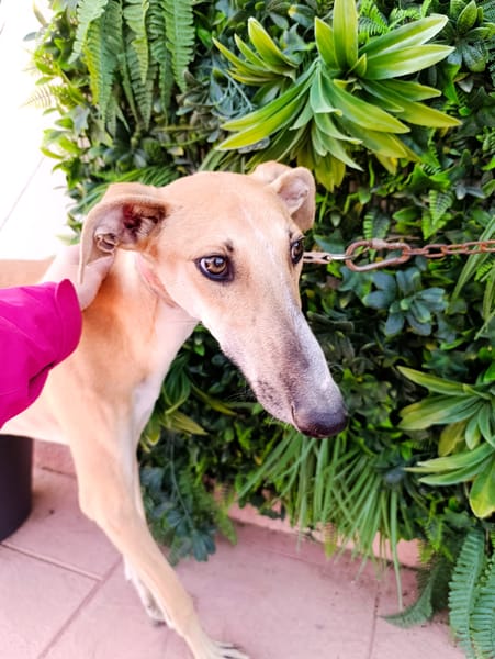 Il devra être adopté par une famille expérimentée avec des galgos craintifs et ayant un autre chien équilibré et sociable pour lui servir de guide.