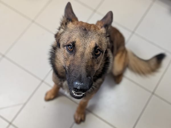 Ursullo, arrivé il y a peu de la fourrière est un chien très mignon avec l'humain mais très sensible.