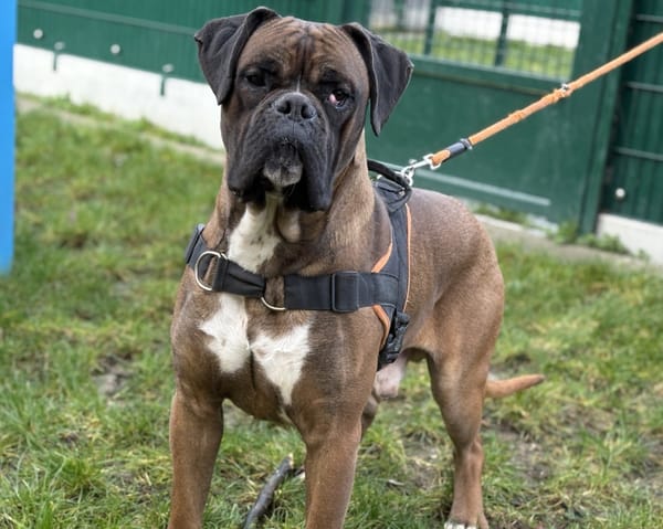 Toffee est un jeune boxer de 2 ans, arrivé récemment de fourrière, et dont nous ne connaissons malheureusement pas le passé. Encore un peu réservé lors des premiers contacts, il a besoin de temps pour accorder sa confiance. Une fois rassuré, il se montre proche de l’humain. Ses ententes avec les chiens et les chats n’ont pas encore été évaluées. Un placement avec un congénère n’est pas exclu, sous réserve d’un test d’entente réalisé au refuge. Toffee recherche une famille douce et patiente, prête à lui laisser le temps nécessaire pour s’adapter à son nouvel environnement et à son nouveau mode de vie. Sensible aux mouvements brusques et encore maladroit dans la gestion de sa force et de son gabarit, un foyer sans jeune enfant sera recommandé pour son bien-être et celui de la famille.