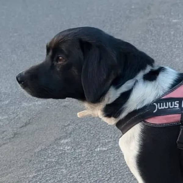 Elle est arrivée il y a quelques semaines et était très effrayée, mais elle a fait d’excellents progrès et apprécie la compagnie de son compagnon de chenil CLYDE. Elle adore courir et jouer dans le parc et chercher le contact pour se faire câliner.