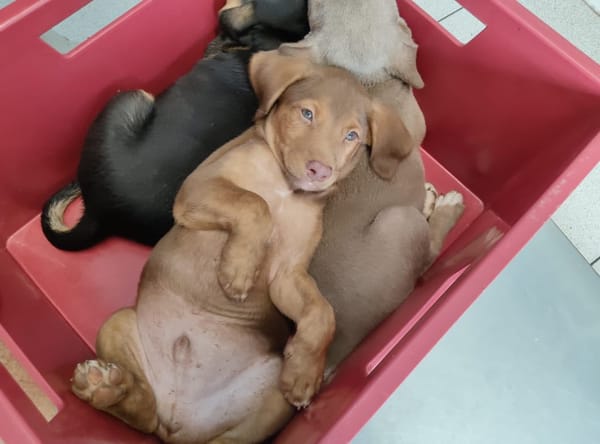 Je dors blotti contre ma sœur et mon frère, bien serré 🐶 🤍