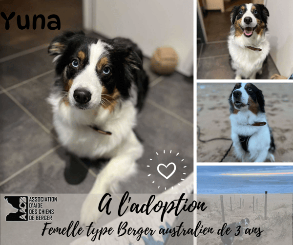 Yüna est une Berger Australien de 3 ans, sensible, affectueuse et joueuse, actuellement en famille d’accueil. Elle recherche un foyer bienveillant, cohérent et disponible pour continuer à évoluer sereinement.