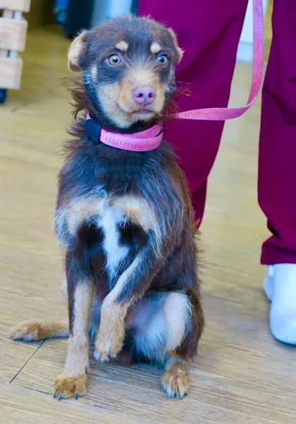 , Marcello un mâle croisé né le 12 juillet 2024, mesure 37 cm au garrot et pèse 4,8 kg.