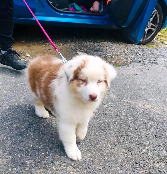 berger australien mâle de 05 mois et demi, affectueux et sociable.
