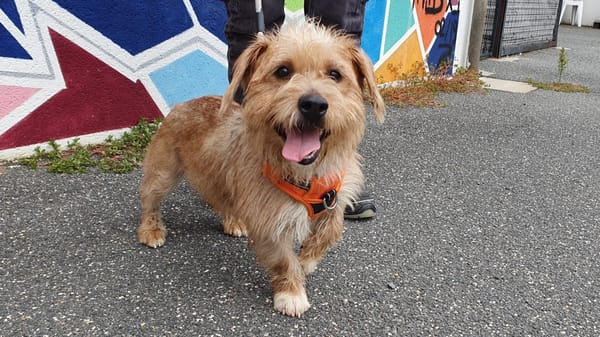 C'est une jeune chienne énergique et proche de l'humain