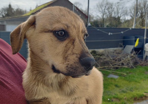 Cette portée de chiot a été abandonnée sur le parking du refuge il y a un mois. L'une de nos famille relais a veillé sur la fratrie, aujourd'hui âgés d'un peu plus de 2 mois, ils sont à l'adoption. Leur taille adulte sera grande, les vétérinaires ont estimé un croisement avec la race cane corso. Crispy, c'est la douceur et le calme incarné !