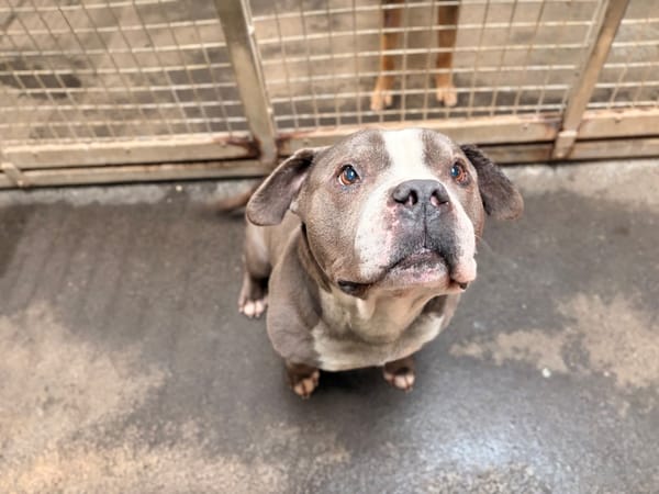 Laos est un american bully qui nous arrive de fourrière. Nous ne connaissons pas son passé.