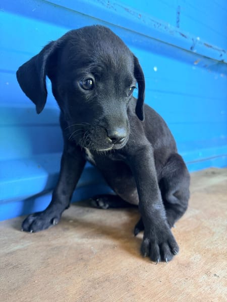 À L’ADOPTION , KEA, FEMELLE NOIRE ET BLANCHE, CROISEE CANE CORSO : chiot femelle à adopter