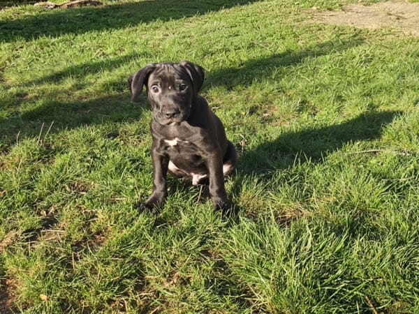 En famille relais - Non visible au refuge - Portée de 9 chiots : Faelan nous arrive de la fourrière avec sa maman et ses frères et sœurs. C'est un chien plutôt calme, indépendant mais très câlin et joueur. il pourra vivre avec des chiens, des chats et des enfants respectueux. Ce sera une chien de grand gabarit, toutes son éducation sera a poursuivre avec douceur et bienveillance. Il pourra vivre en maison ou en appartement. Croisé Rottweiler et Cane Corso, ils seront de très gros gabarit !
