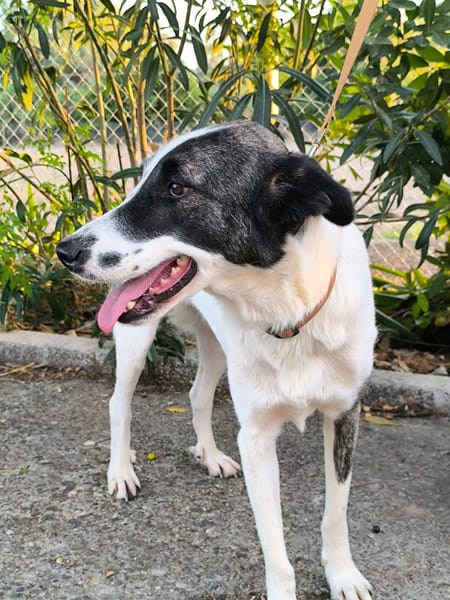 Elle marche maintenant parfaitement en laisse, très sociable, elle n'a pas peur des bruits de la ville comme les voitures , enfin jusqu'a un certain point.. elle peut se bloquer, ce qu'il faudra prendre en compte pour son adoption.