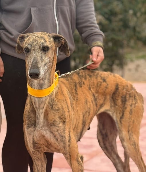 YUKI est une Galga qui a passé sa vie à participer à des courses. Elle n’a rien connu d’autre que cela. C’est une chienne très, très affectueuse, proche de l’humain et toujours en quête de tendresse. Elle est compatible avec les autres chiens et avec les enfants. En revanche, elle ne pourra pas vivre avec des chats, car elle a tendance à les poursuivre. YUKI mérite aujourd’hui de découvrir une autre vie, celle d’un foyer, de la douceur et de l’amour qu’elle n’a jamais vraiment connus.