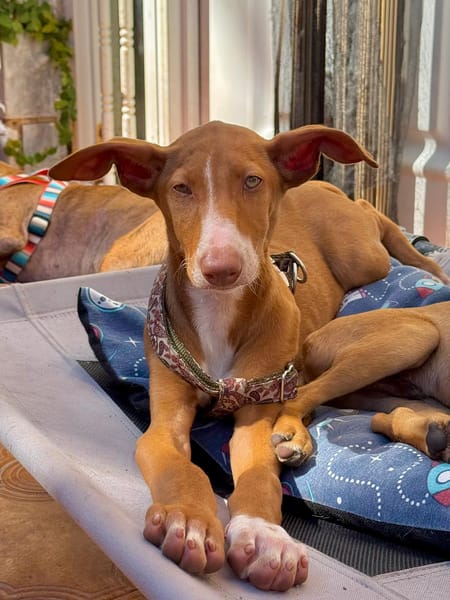 FREYA est une jeune podenca encore chiot, sensible et en plein apprentissage de la confiance. À son arrivée, elle avait une peur très importante des humains, signe d’un passé difficile ou d’un manque de repères. Petit à petit, grâce à la patience, à la douceur et à l’affection qui lui sont accordées, FREYA progresse dans son cheminement et commence à s’ouvrir davantage. Chaque petite avancée est précieuse et montre sa capacité à évoluer lorsqu’elle se sent en sécurité. Les autres chiots et chiens l’aident énormément dans ce processus, FREYA adore jouer avec eux et se sent particulièrement heureuse et rassurée en leur compagnie. La présence d’un autre chien équilibré pourrait d’ailleurs être un véritable atout pour son futur foyer.