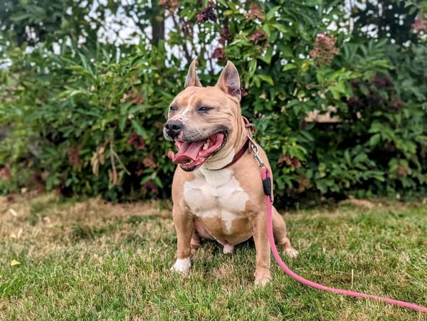 Titi, magnifique American Staff LOF de 6 ans. Derrière ses muscles et sa grosse tête se cache un cœur généreux, mais il n’a pas encore trouvé son âme sœur.