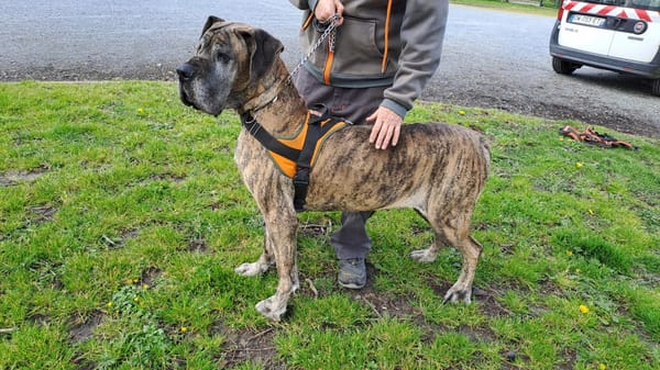 PAOLA se montre affectueuse, proche de l'humain et assez calme, un Dogue de cet âge est déjà un sénior... Elle se contentera de petites balades pour sa "retraite", afin de continuer à profiter de la vie et être bien dans ses pattes. Venez donc la rencontrer !