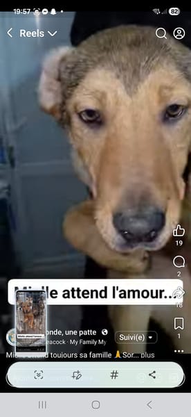 Récupérée à la fourrière par Claudia, que nous remercions infiniment pour sa gentillesse, Mielle cherche maintenant sa famille pour la vie. 🏡