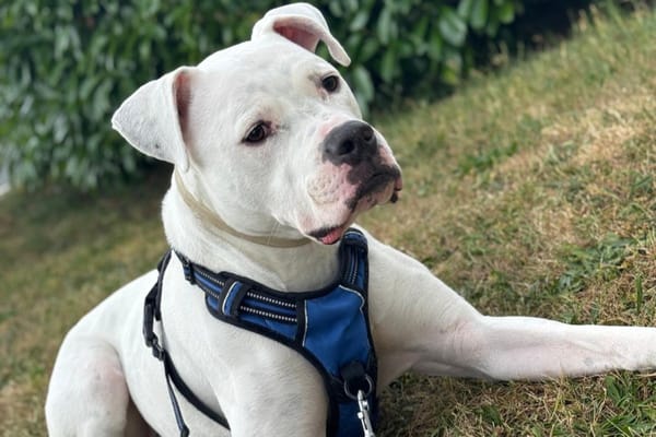 Masta à été directement abandonné au refuge. Masta est un croise dogue argengin de gros gabarit (40kg), un adorable loulou, très proches des humains il pourra vivre avec des enfants. Il pourra aussi vivre avec un chien et avec des chats. Masta à beaucoup de mal avec la solitude, c'est pourquoi nous lui cherchons une famille avec peu d'absence ou un logement avec un garage/dépendance avec un accès à un jardin bien clôturé assez haut.