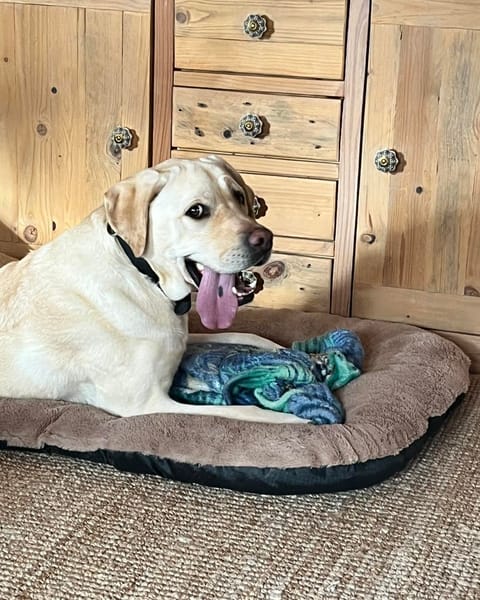 Bermude est un 𝑳𝒂𝒃𝒓𝒂𝒅𝒐𝒓 𝒅𝒆 𝟓 𝒂𝒏𝒔, aussi beau que sympa. Il est câlin, joueur, propre, non destructeur, une vrai perle ! Il ne connait pas les chats mais a déjà vécu avec poules et cochons d’indes !
