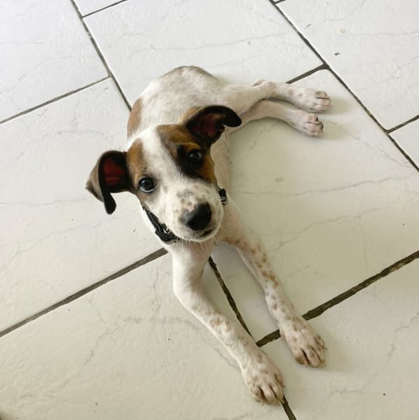 Je suis née le 30 janvier 2026. Je suis identifiée (n°250269699797989), primo-vaccinée, déparasitée et vermifugée. Je pèserai environ 20-25 kg à l’âge adulte. Je suis actuellement en famille d’accueil en Guadeloupe.