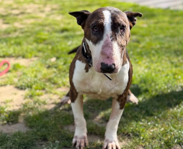 Phœnix est arrivé au refuge suite à une saisie… Aujourd’hui, il attend simplement une seconde chance C’est un chien adorable, calme, mignon et très affectueux Il apprécie la présence de l’humain et recherche un foyer doux où il pourra enfin se poser. Phœnix a récemment été opéré des entropions aux yeux, il est désormais soulagé et prêt à commencer une nouvelle vie dans de bonnes conditions Le Bull Terrier est une race qui demande de l’attention, de la présence et un cadre adapté pour s’épanouir pleinement. Il pourra vivre en maison ou en appartement, avec des enfants respectueux. Il s’entend avec les femelles mais pas avec les chats. Phœnix mérite vraiment de quitter le refuge et de retrouver la chaleur d’un foyer… il ne doit pas être oublié