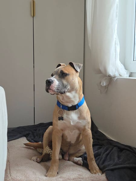 🏡 En extérieur : Très à l'aise en ville, il est curieux et prend le temps d'observer lorsqu'il rencontre une situation inconnue. Pas de prédation avec les chats, les oies ou les canards. Pas perturbé par les enfants, ( pas mit en contact direct ) mais il joue souvent dans un parc avec plein d'enfants autour et il ignore complètement l'agitation et les cris. Avec ses congénères, il a tendance à les harceler facilement et ne tient pas compte de leur consentement. En forêt, il est curieux de tout mais reste proche de ses humains. Il adore ses siestes au soleil sur le dos, engloutir sa gamelle et toujours garder un œil sur ses humains dans la maison.