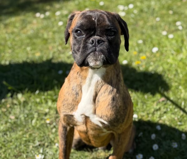 Atos est un jeune Boxer de 11 mois, encore un peu timide face au monde qui l’entoure C’est un petit bonhomme sensible qui aura besoin de temps, de patience et de douceur pour prendre confiance et découvrir sereinement son nouvel environnement. Avec un accompagnement adapté, Atos pourra évoluer et révéler toute sa personnalité Éducation • Tout est à apprendre • Marche en laisse à travailler Atos aura besoin d’un cadre rassurant et d’un adoptant investi et cohérent pour progresser. Conditions de vie • Pas de jeunes enfants • Possibilité avec grands enfants respectueux • Foyer calme recommandé Ententes • Ok chiens La présence d’un autre chien équilibré est recommandée, afin de l’aider à prendre confiance et à évoluer. Atos aura besoin d’un adoptant présent et patient, prêt à s’investir dans son éducation et son bien-être. Atos est un jeune chien attachant qui, avec du temps et de l’amour, deviendra un compagnon fidèle.