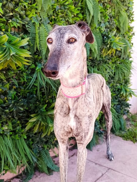 SON CARACTERE : Tinta est une galga très gentille au profil facile et équilibré. Elle est sociable et très affectueuse. Elle n’a aucune crainte, elle s’adapte très vite et elle adore le contact avec les personnes. Elle est plutôt calme mais elle se lève rapidement pour dire bonjour lorsque quelqu’un entre dans son box. Elle fait la fête, remue la queue, se blottit contre ses visiteurs. Elle s’entend très bien avec ses congénères avec qui elle est soumise.