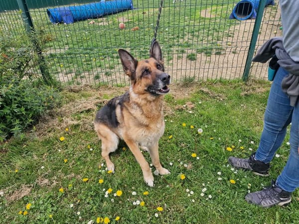 Chienne qui n'a pas eu une vie facile. Sociable et dynamique. Comme tout bon berger allemand elle a tendance à vocaliser notamment lorsqu'elle est en laisse (sans agressivité). Elle est sociable avec ses congénères. Nous cherchons un foyer très présent car elle ne semble pas supporter l'absence.