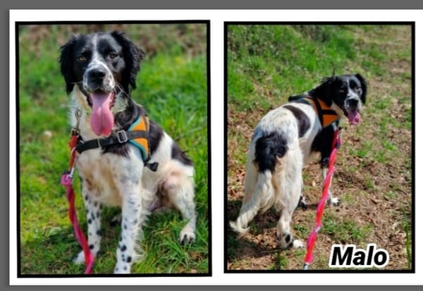 Malo nous vient de la fourrière de Saint Lô il a été trouvé le 13 février mais personne ne s'est manifesté pour venir le chercher. Malo est chien adorable débordant d'affection et d'énergie. Pas encore testé chien ni chat au refuge .