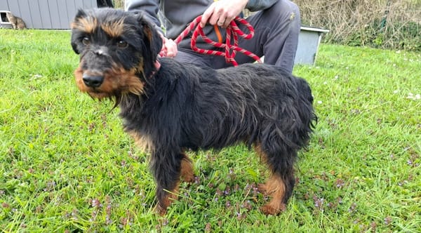 Il ne sait pour le moment pas marcher en laisse. C'est un chien qui apprécie le contact après une période d'adaptation.