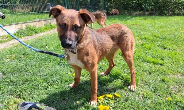 Aria est arrivée suite à un transfert de Roumanie. C'est une jeune chienne pleine de vie, sociable et proche de l'humain lorsqu'elle prend confiance (elle peut se révéler un peu timide au premier abord). Elle adore courir et s'amuser. Elle s'entend avec les autres chiens sous réserve d'une présentation au refuge. Ses ententes avec les chats n'ont pas été testées. Elle pourra vivre avec des enfants respectueux.