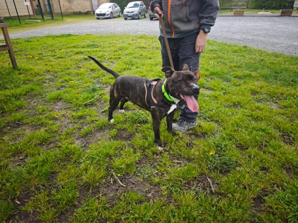 SNOOP est un chien croisé Dogue, arrivé au refuge en provenance de la fourrière, il a été pris en charge car trouvé errant… Il se montre timide au premier abord, mais il accorde sa confiance à l’humain à qui l'aborde avec bienveillance. SNOOP est un chien calme en box, mais qui aura toutefois besoin de sorties régulières et d’activités quotidiennes pour être bien dans ses pattes. Jeux, balades, stimulation mentale… Il ne s'entend pas avec les chiens, ses ententes chats et enfants ne sont pas encore connues.